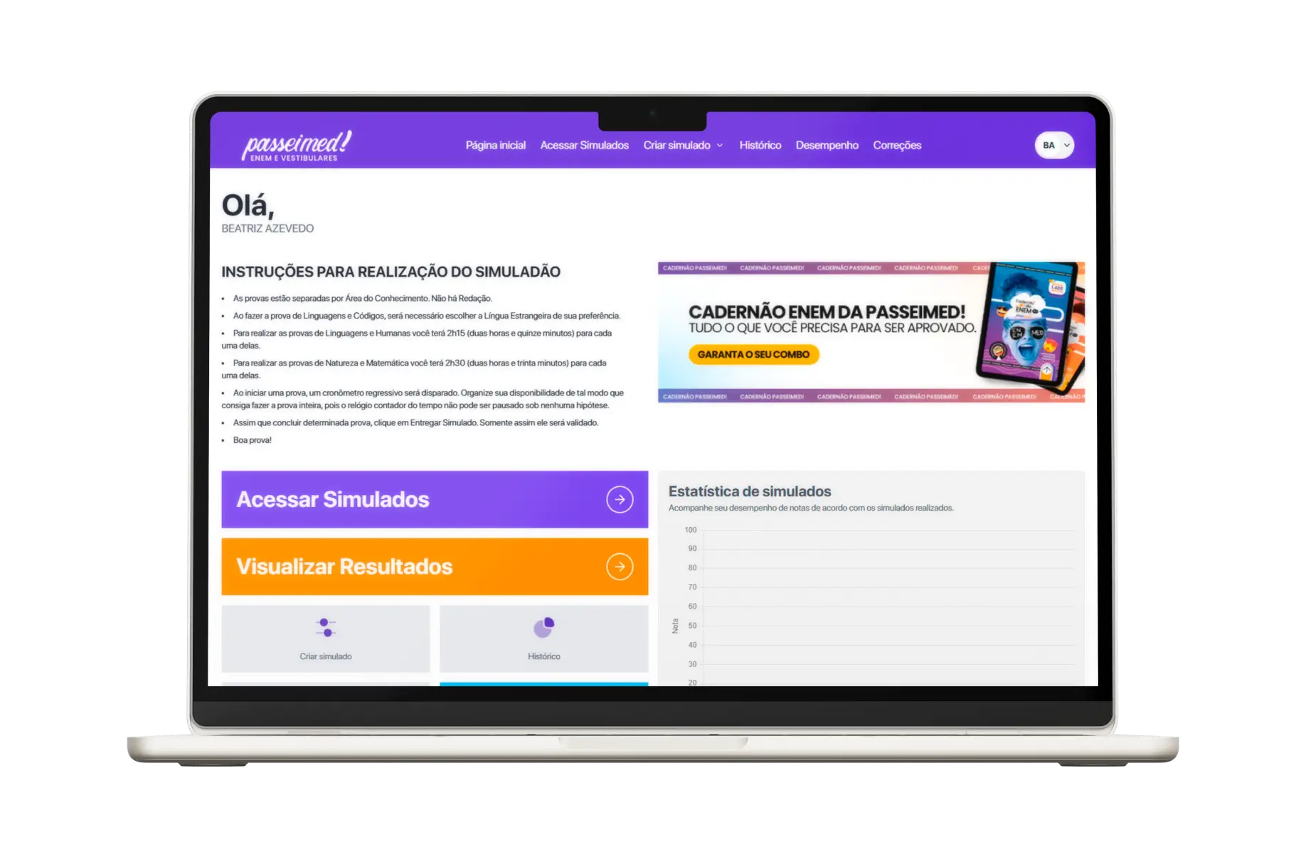 Domine o formato da prova e acompanhe sua evolução com simulados semanais no modelo exato do ENEM, com análise de desempenho para ajustar o foco nos pontos que mais precisam melhorar.