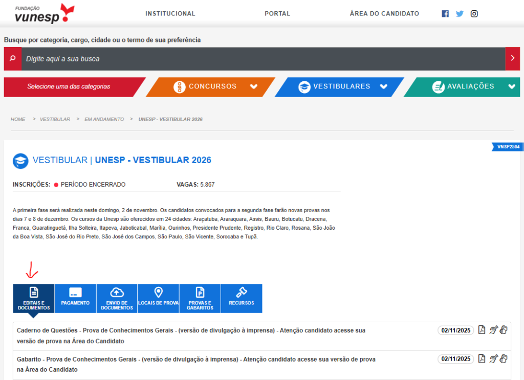 Dica: Pesquise no site oficial da Fuvest, calendário Unicamp, calendário Vunesp e datas Provão Paulista para confirmar datas específicas.
