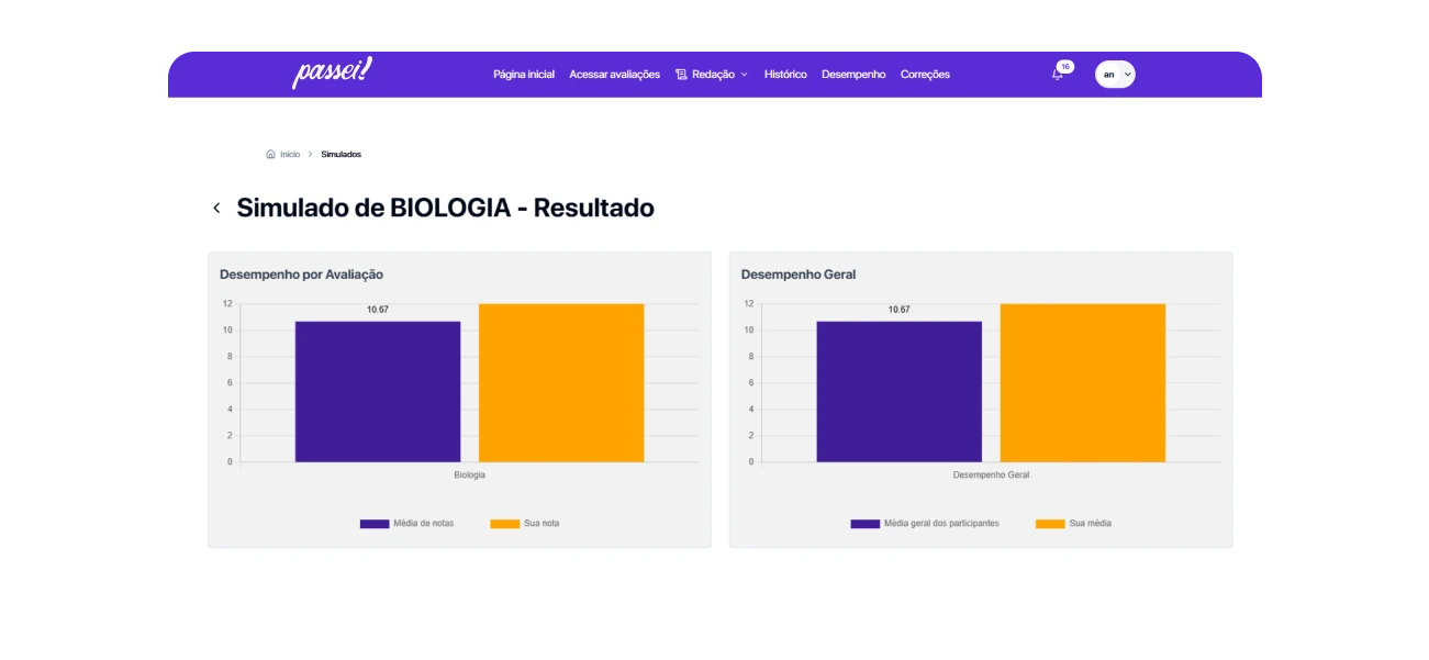 Permite ao aluno e ao professor o acompanhamento da evolução do desempenho em cada área do conhecimento, por meio da comparação entre a média individual e a média geral, possibilitando a identificação de avanços, lacunas e prioridades de estudo ao longo das avaliações.